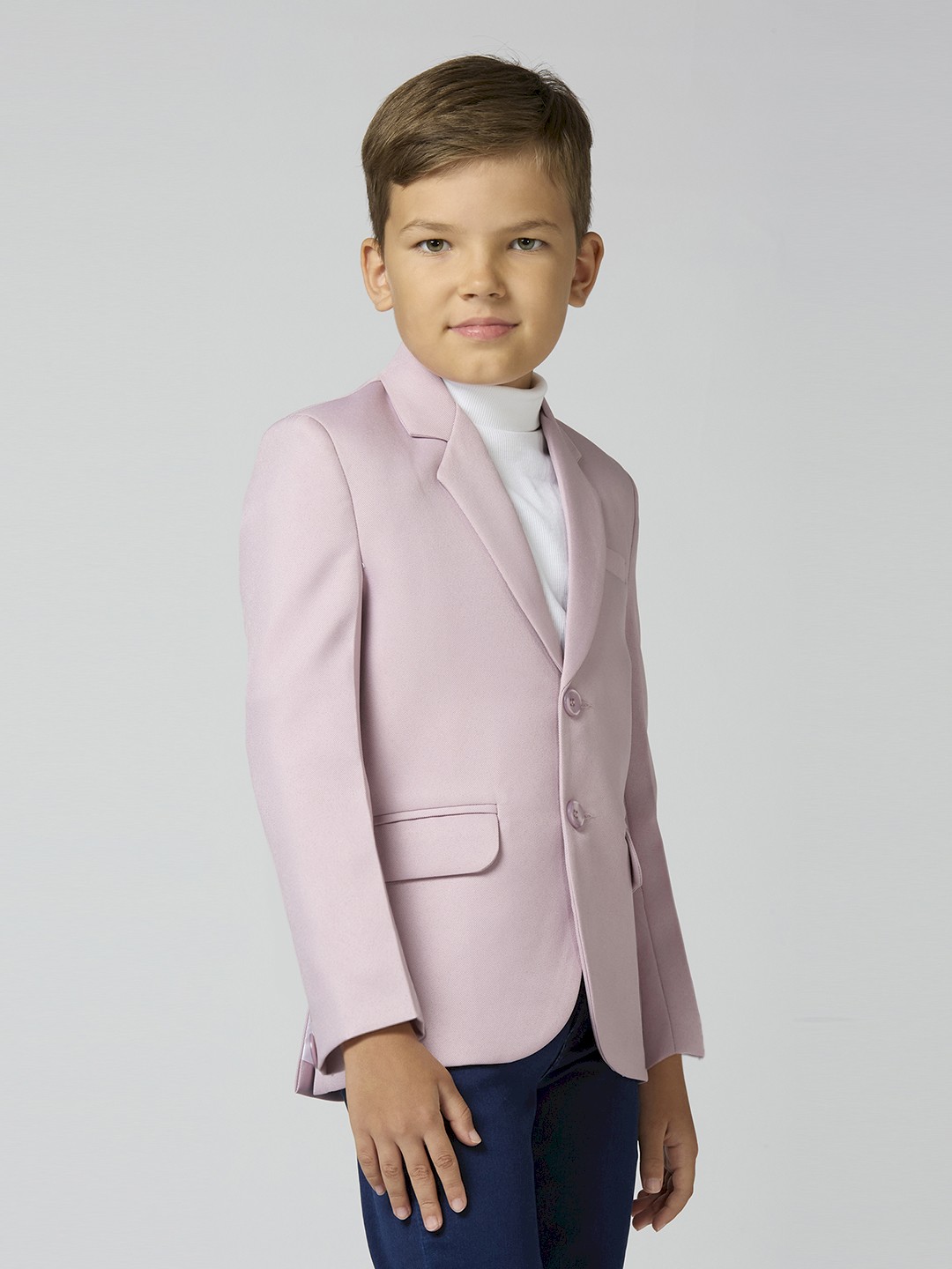 This Pink solid blazer offers a fresh and stylish twist on classic elegance. Perfect for weddings, formal events, or special occasions, the blazer features a tailored fit that combines comfort with sophistication. The soft purple hue adds a vibrant yet refined touch, making it an ideal choice for young gentlemen who want to stand out with grace and style.