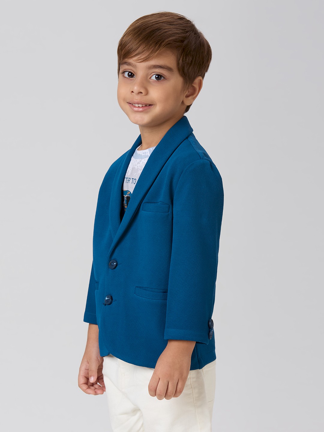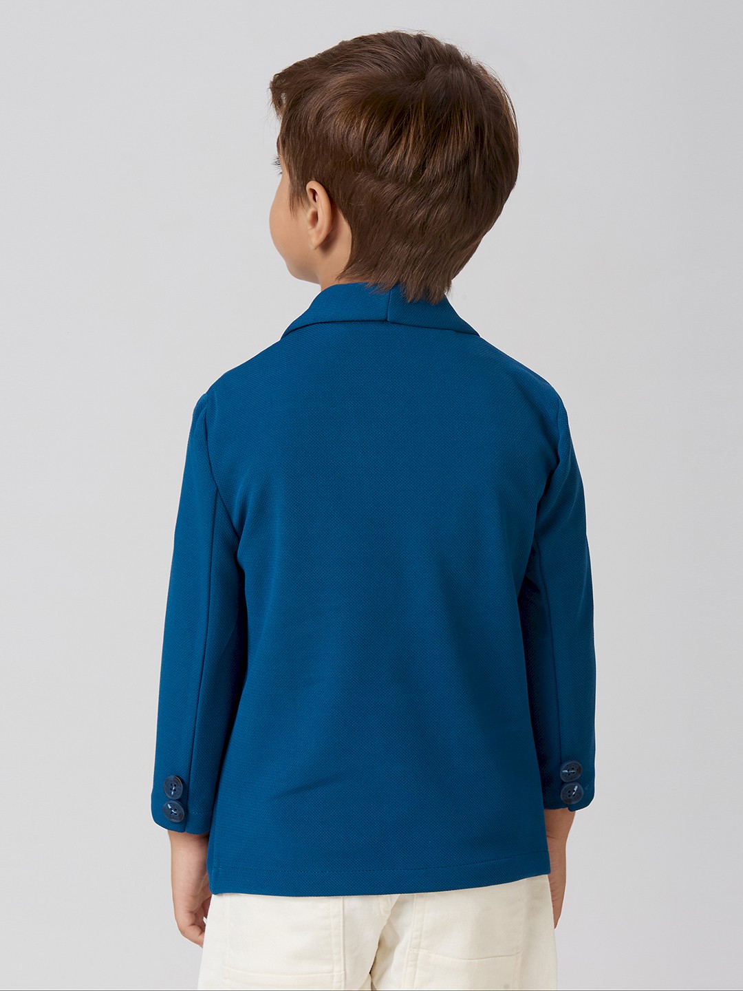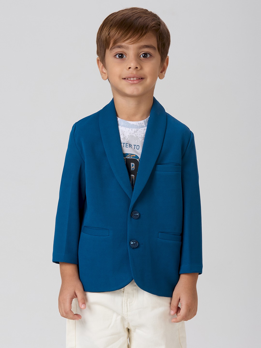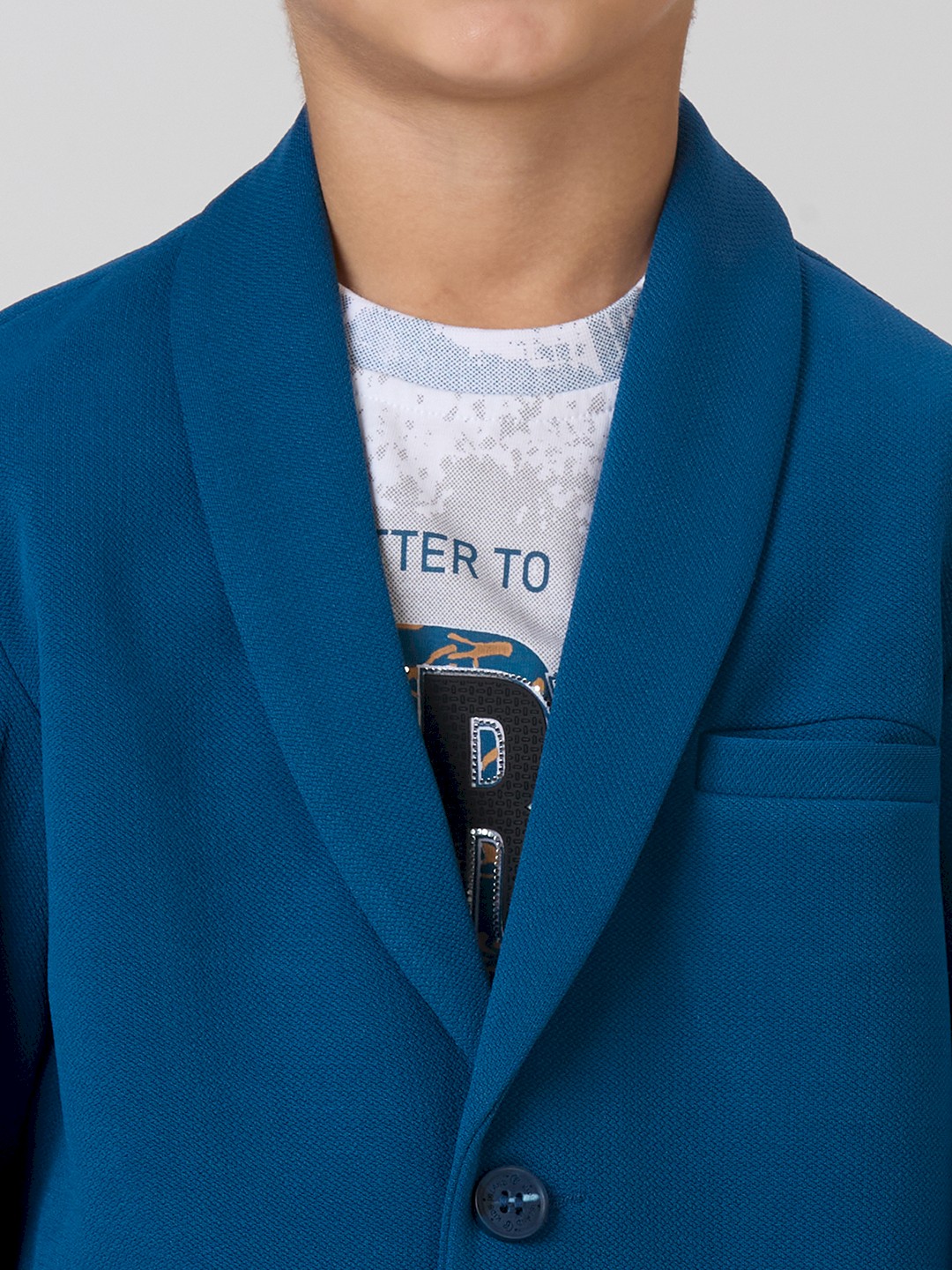 Vibrant and eye-catching, the Kids Island Full Sleeves Blazer Set in Teal Blue combines a sharp blazer with a fun graphic-printed T-shirt perfect for making a bold fashion statement at any event.